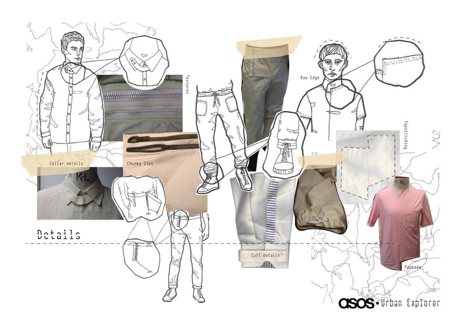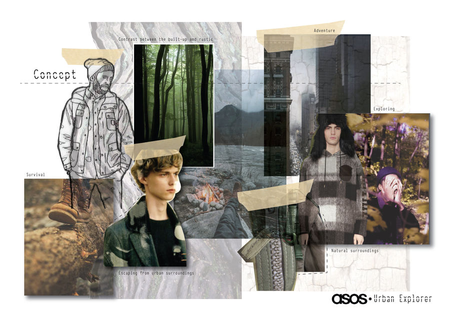 The project was carried out in groups together with the support of ASOS menswear designers. Our group created a collection inspired by the Urban Explorer. Someone who is very active and likes to travel the world, see new places and meet new people. Someone who is not afraid of challenges and is always up for a new adventure, but also loves to live in a busy city. We looked at the nature, its environment, and compared it to the urban landscape. We combined practicality, functionality and street style into our collection for the modern ASOS customer.
